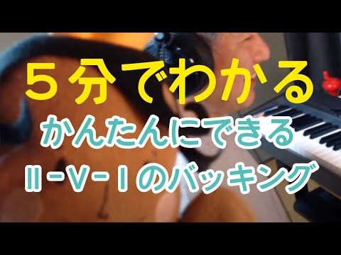 今日は、ジャズ曲によく出てくるコード進行であるⅡ-Ⅴ-Ⅰのバッキングで、一番簡単な右手のつくりかたを説明しました。